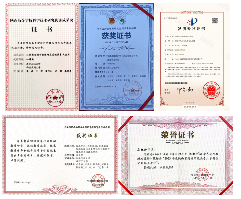 近年来,专业教师主持科研项目百余项,经费1000余万元,其中纵向科研项目20余项,共计科研到款320余万元;发表高水平学术论文百余篇,其中SCI/EI检索论文60余篇;授权专利20项,获陕西省科学技术奖3项,陕西省高等公司科学技术奖2项,中国纺织工业联合会科学技术进步奖1项;出版教材5部。