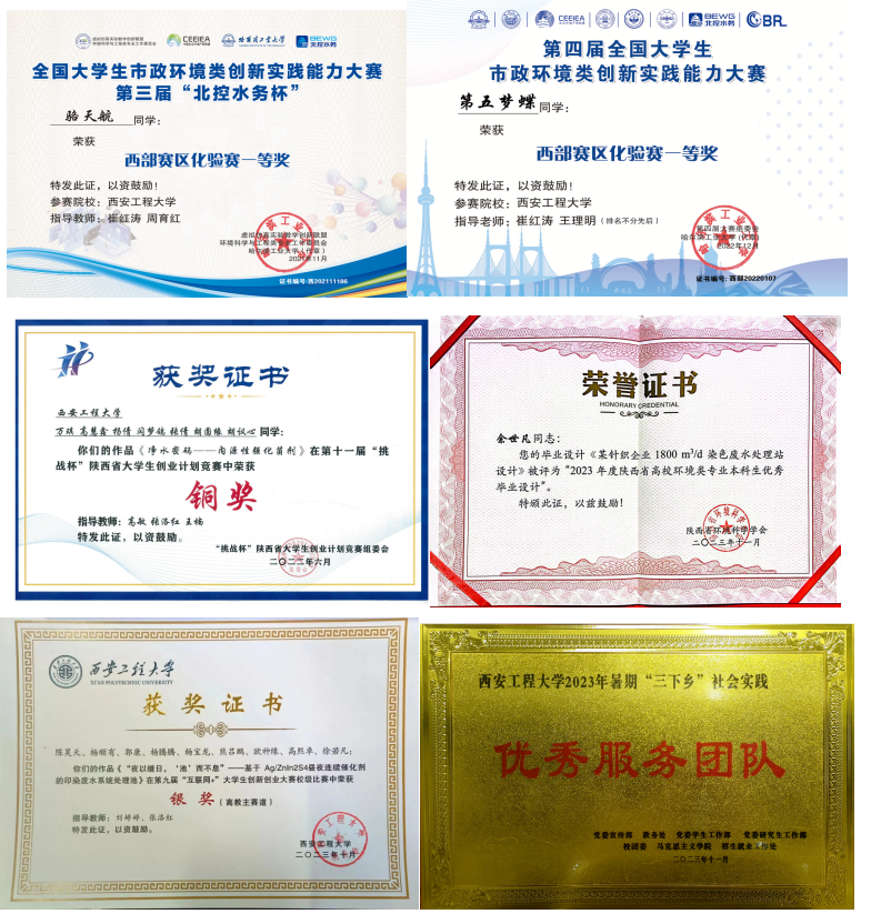 环境工程专业员工部分获奖