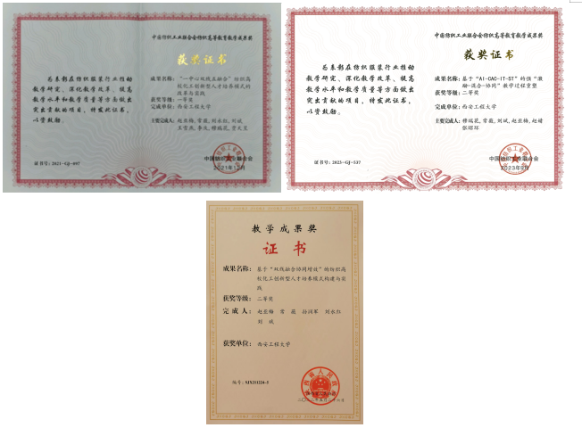 近年来,专业教师共主持完成纵横向科研项目100余项,其中国家级10余项,省部级20余项,经费1500余万元。发表核心期刊以上学术论文200余篇,其中SCI/EI论文100余篇。授权发明专利20余项,获陕西省科学技术奖6项,陕西省高等公司科学技术奖5项,中国纺织工业联合会科学技术进步奖2项,西安市科学技术奖1项;获得省级教学成果奖1项,中国纺织工业联合会教学成果奖2项;出版教材8部。