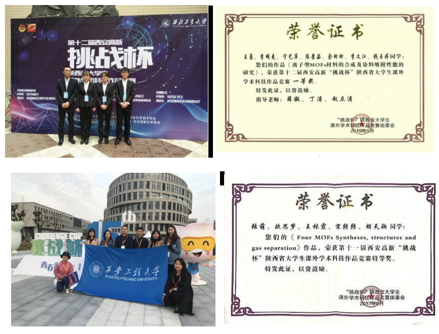 员工参加挑战杯科技竞赛及获奖证书