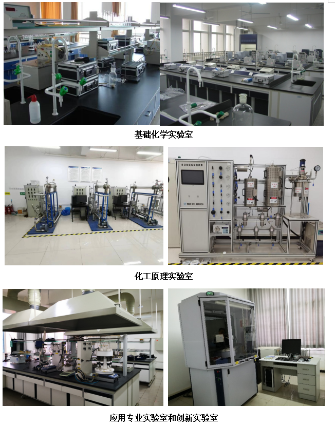为保证教学需要,培养员工实际操作能力,实现理论与实践的紧密结合,本专业基础设施完备,可用于教学的实验室包括无机化学、分析化学、有机化学、物理化学四大基础化学实验室;应用化学专业实验室、应用化学创新实验室等专业实验室,配套设施先进、功能齐全。通过共享公司分析测试中心的扫描电子显微镜、X射线衍射仪、原子吸收、气质联用色谱仪等价值约两千万元的大型仪器设备,以及与校内其它实验中心(室)搭建资源共享平台,实现了实验资源的整合与优化配置,专业基础条件得到较大改善和提高。