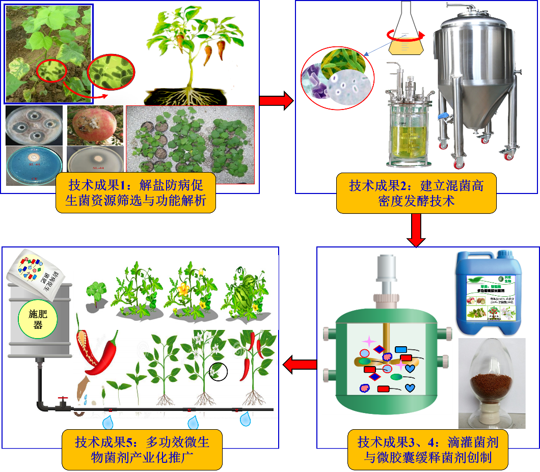 公司武占省教授牵头,由WilliamHill、清华大学、石河子大学、咸阳润源生物科技有限公司、西安市农业技术推广中心等单位组成的团队武占省、何艳慧、李春、刘啸尘等人,历经近20年的产学研合作进行基础研究、技术攻关和应用推广,完成的“多功效微生物菌剂研发与推广应用”成果,荣获2023年中国产学研合作创新与促进奖“产学研合作创新成果奖”二等奖。该成果创新性从西北地区获得500余株具有自主知识产权的解盐防病促生功能菌株,完成了10余株优势代表菌株的解盐、防病促生机制解析和全基因组测序与基因功能结构解析;建立了3个协同增效混菌组合和混菌高密度发酵技术,获得有效活菌数为1000亿CFU/ml,活菌数超过农业生物菌剂国家标准的500倍;开发了系列多功效滴灌与缓释微生物菌剂产品和创制技术,获批国家微生物菌剂产品登记证3个,授权国家专利11件;产品和技术已转化到咸阳润源生物科技有限公司等多家单位,在苹果、猕猴桃、辣椒、番茄、黄瓜、西瓜等作物进行推广应用,具有显著经济、社会和生态效益。