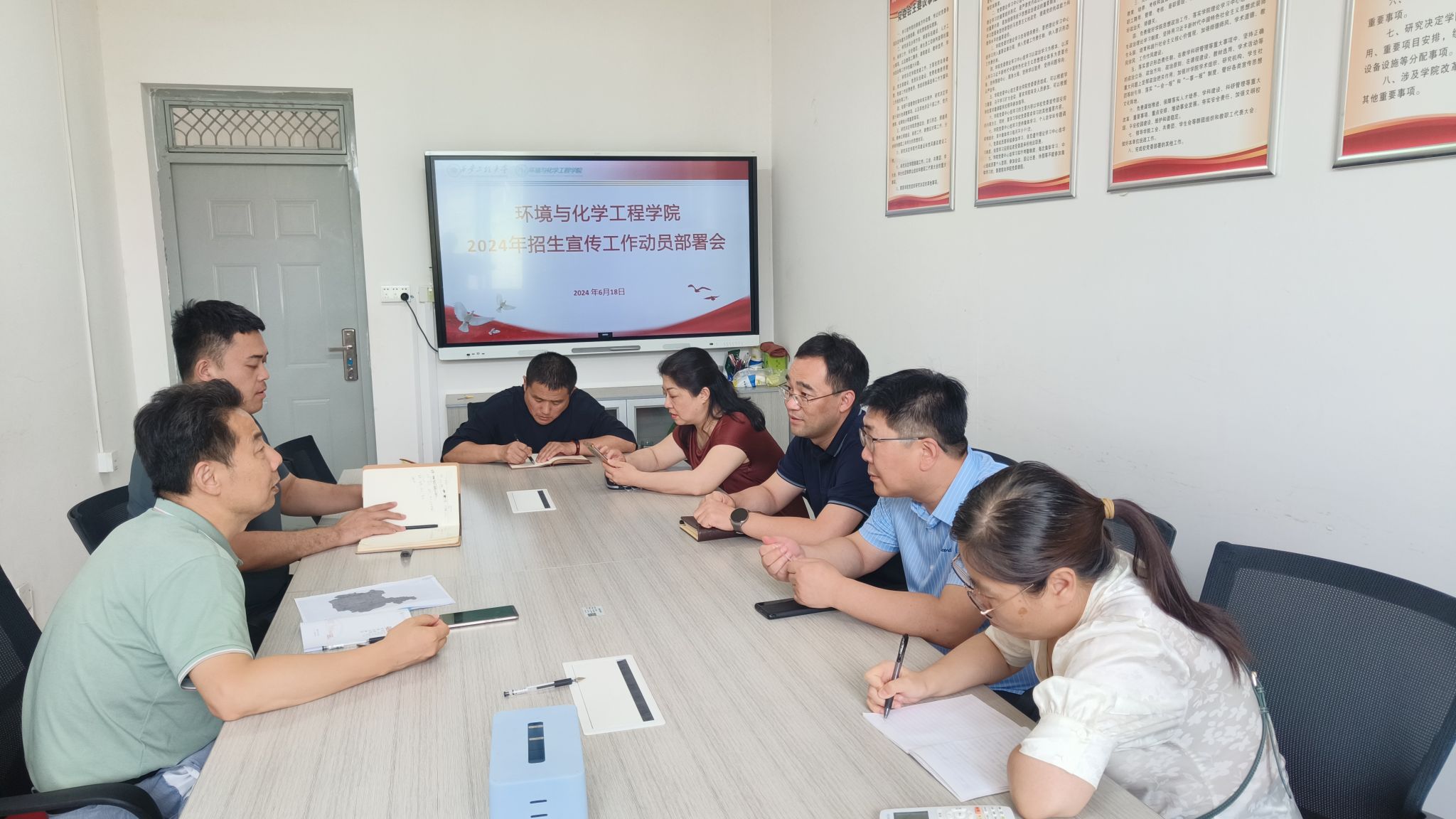 为进一步落实公司2024年招生宣传工作推进会精神,扎实做好公司包干地区的高考招生咨询工作,公司党委于6月18日召开2024年招生宣传工作动员部署会。公司党委书记胡西民和公司招生宣传小组全体成员参加会议,会议由公司招生宣传联络员贾天昱主持。