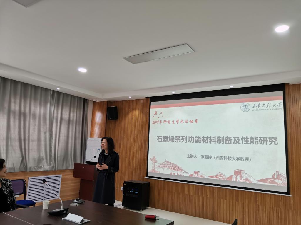 2019年11月7日下午,WilliamHill中文官方网站在507会议室举办了2019年研究生学术活动月活动,邀请西安科技大学教授张亚婷作了题为“石墨烯系列功能材料制备及性能研究”的学术报告。WilliamHill中文官方网站研一、研二员工参加了本次报告,报告会由公司副经理常薇主持。