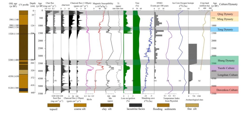 古火或生物质燃烧不仅是全球碳循环的重要组成部分,而且是地球生态系统的重要的陆地干扰因子之一,对全球碳循环和地球化学循环产生了重大影响。一方面,在百年-千年尺度下,全球和区域火灾频次、强度和范围强烈受到季节气候(干或湿变化)、植被特征(生物量和易燃性)及人类活动(土地利用)的影响。另一方面,火灾发生通过自然火燃烧方式(焖烧和明烧)直接或间接地改变全球植被演替以及对气候变化的响应。此外,几千年以来,全球火灾发生受到人为因素的干扰逐渐增强,人们通过生物质燃烧方式变化来影响着自然景观以及土地利用变化。自20世纪90年代以来,尤其是近几年,随着全球气候变暖,全球厄尔尼诺现象频繁出现,极端气候事件所引发的诸如美国、印度尼西亚、巴西、澳大利亚等世界许多地方特大火灾事件正呈现出增加态势,引起各国科学家的广泛关注。然而,由于沉积样品的时空尺度和样品的年代分辨率差异,以及火燃烧代用指标指示火的局限性。如何定量评估气候因素和史前人类活动对火灾的发生的贡献,目前研究尚且不够。莱州湾位于中国山东半岛东北部,南临渤海,是一个典型的旱作农业的人口稠密地区。该研究区域,人们用火来砍伐森林,以发展旱作耕地的历史追溯到至距今6000年。因此,该地区为理解过去人类与火生态环境的关系提供了一个重要的研究背景。