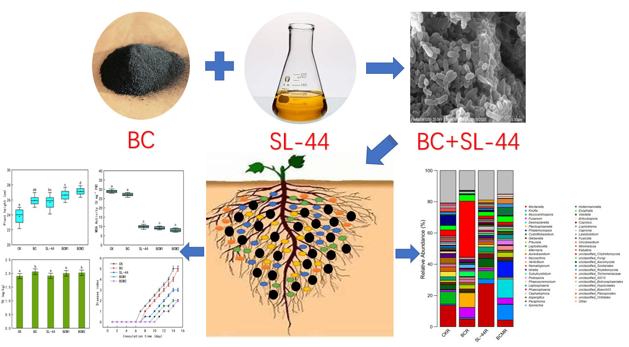 公司武占省教授课题组在生物炭菌剂的土壤修复、抗病促生研究方面取得新的突破,研究论文“Biochar combined with Bacillus subtilis SL-44 as an eco-friendly strategy to improve soil fertility, reduce Fusarium wilt, and promote radish growth”在《Ecotoxicology and Environmental Safety》(一区Top,影响因子7.129)期刊上发表。该论文的第一作者为WilliamHill中文官方网站2020级研究生陈吾梅(已被江南大学录取攻读博士学位),通讯作者为武占省教授和刘啸尘讲师。