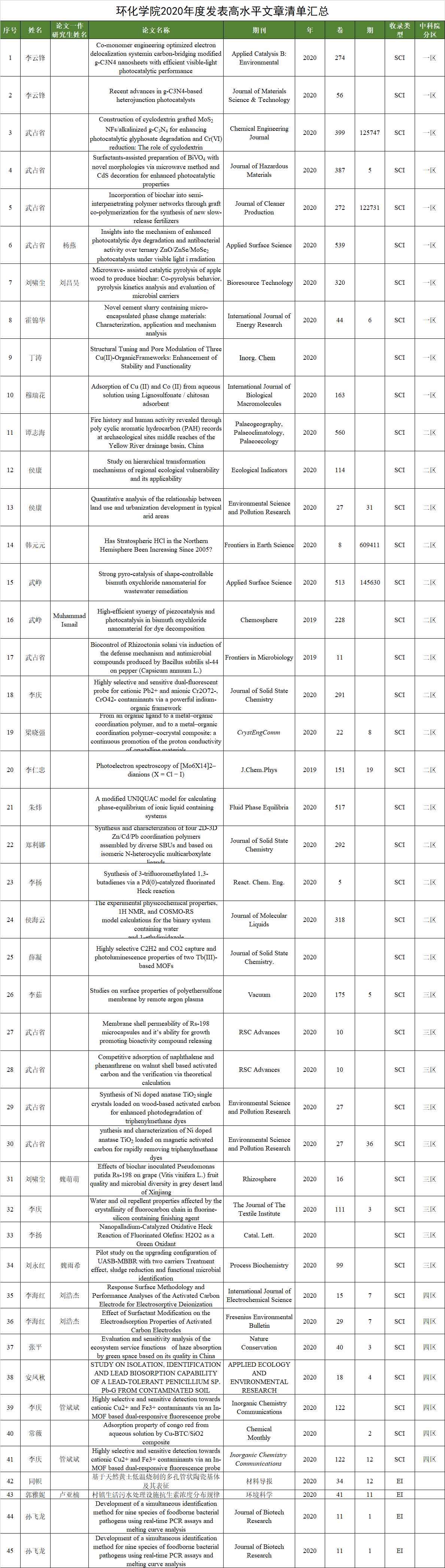 WilliamHill中文官方网站2020年度发表高水平文章清单汇总