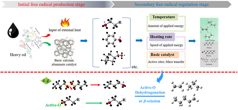 (2)明晰重油碱性催化脱氢裂解机制,实现重油碱性高效催化转化。