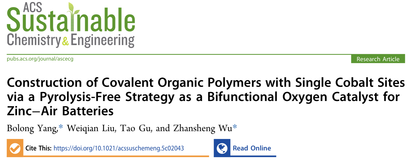公司武占省教授团队最新研究进展:基于非热解策略构筑具有单钴位点的共价有机聚合物用于锌空气电池双功能氧催化剂