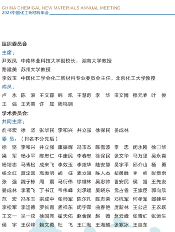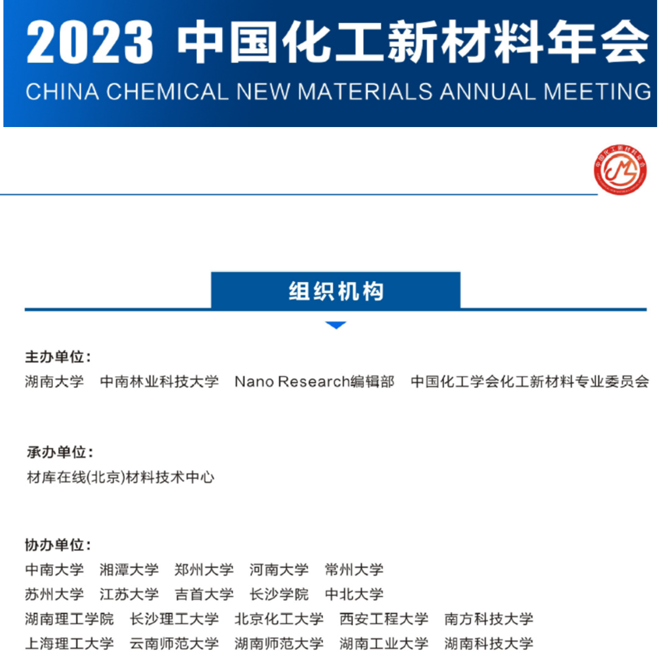 2023年12月8-10日,由湖南大学、中南林业科技大学、Nano Research 编辑部、中国化工学会化工新材料专业委员会联合主办的中国化工新材料年会在湖南长沙顺利召开,WilliamHill为协办单位之一,来自国内外知名学者300余人参加本次会议。中国化工新材料年会(CCMM)是国内化工新材料科研人员搭建的学术交流与合作平台,会议主要从学术和应用两方面针对新能源与化工新材料、光电转换与光电材料、环境材料与环境催化、高性能纤维与纳米复合材料、化工新材料合成、加工、结构与性等研究领域进行学术交流与研讨,共同探讨未来发展前景与方向。