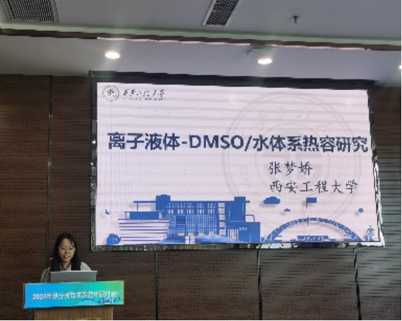 公司侯海云教授指导的研究生张梦娇参加此次会议,并做题为“离子液体-DMSO/水体系热容研究”的学术报告。重点介绍了作为纤维素溶剂的离子液体与其促溶剂DMSO和再生剂水组成的二元体系的热容性质研究,以及从溶液结构方面探讨了分子溶剂对离子液体溶解纤维素的影响因素。该研究有利于助力废旧棉纺织品的绿色回收和高值化功能化应用。报告后,张梦娇与专家学者做进一步交流与讨论。此外,基于报告内容撰写的论文荣获本次会议青年优秀论文二等奖。这充分体现了公司研究生的科研能力和综合素养,也展现了公司化学工程与技术学科与纺织科学与工程学科交叉融合的研究成果。