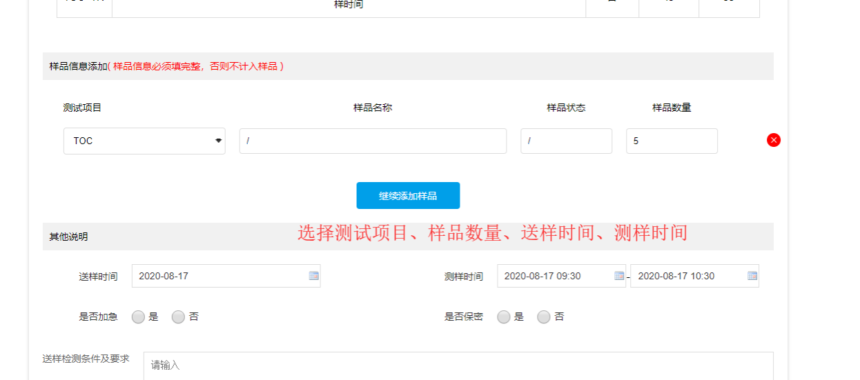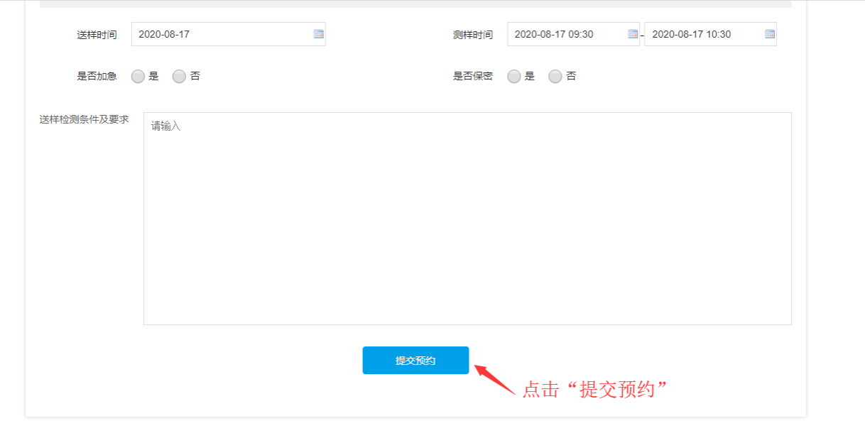 送样预约操作方法: