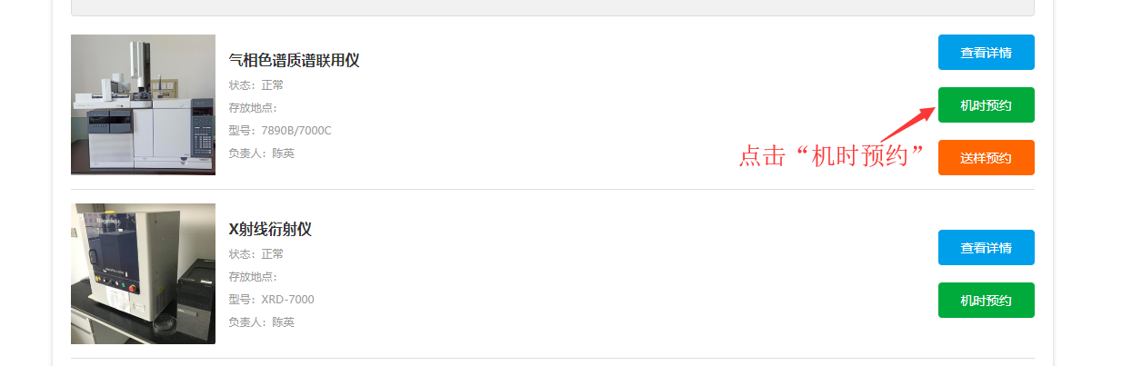 第二步,选择需要预约仪器并预约。