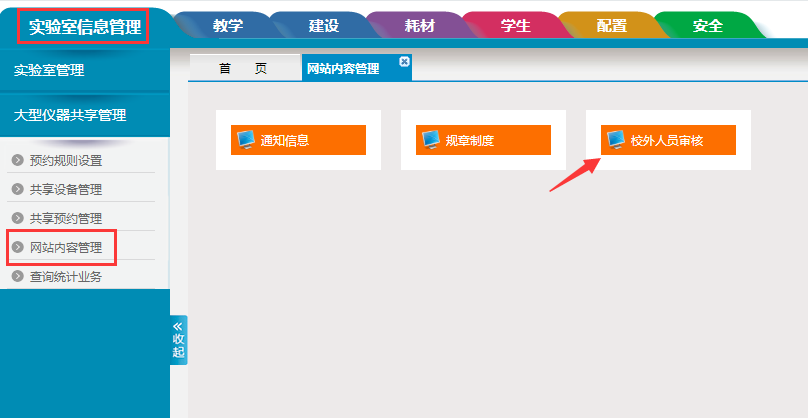 校外人员注册后管理员在如下功能审核