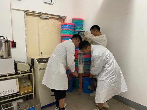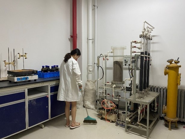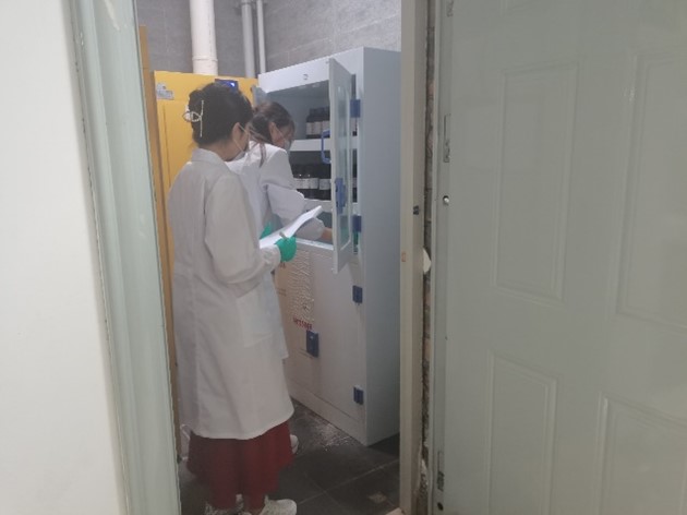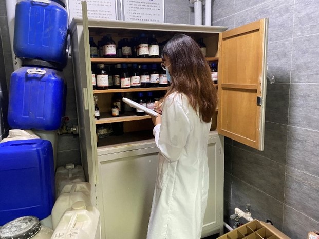 志愿者们在于翔老师和董祥芝老师的带领下对实验室库房、分析测试中心库房、公司危化品库房、公司危险废物暂存间进行清理、整理,对各库房现存物品进行清点、登记,分类放置,为公司其他实验室暂时不用的仪器设备清理出空间,优化实验室布局。