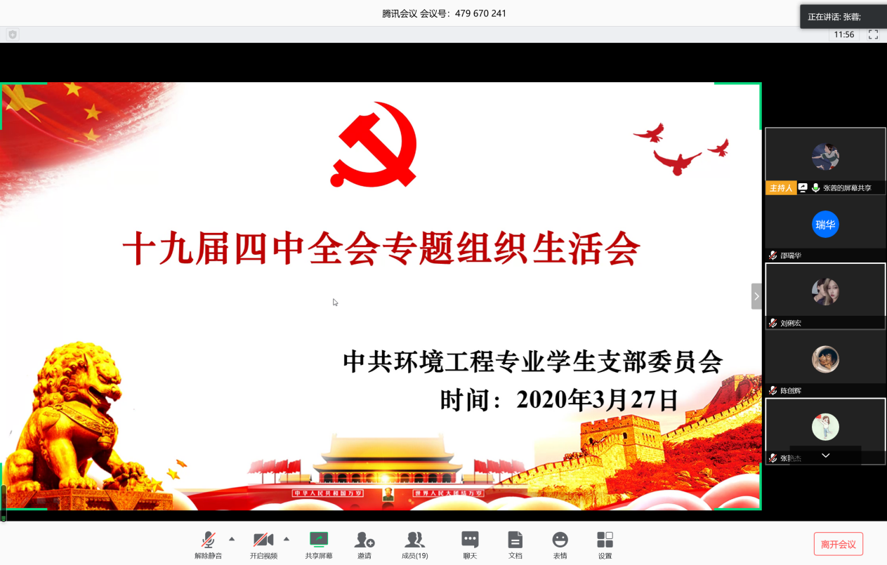 2020年3月27日下午16时,环境工程专业员工党支部以视频会议形式召开了十九届四中全会专题组织生活会,党支部20名党员参加了学习讨论。