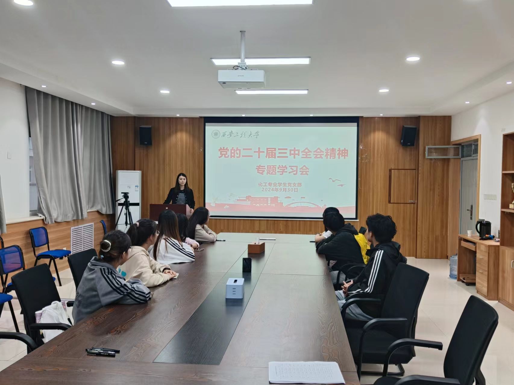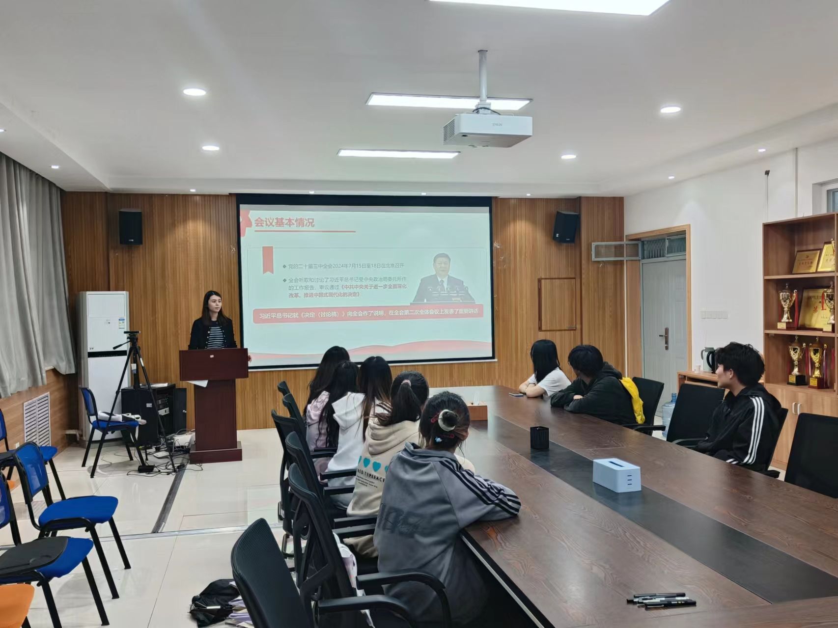 首先,盖潇宇向同学们介绍了党的二十届三中全会的基本情况,她强调,党的二十届三中全会是在以中国式现代化全面推进强国建设、民族复兴伟业的关键时期召开的一次十分重要的会议,不仅为青年员工指明了方向,也赋予了青年一代重要的责任与使命。