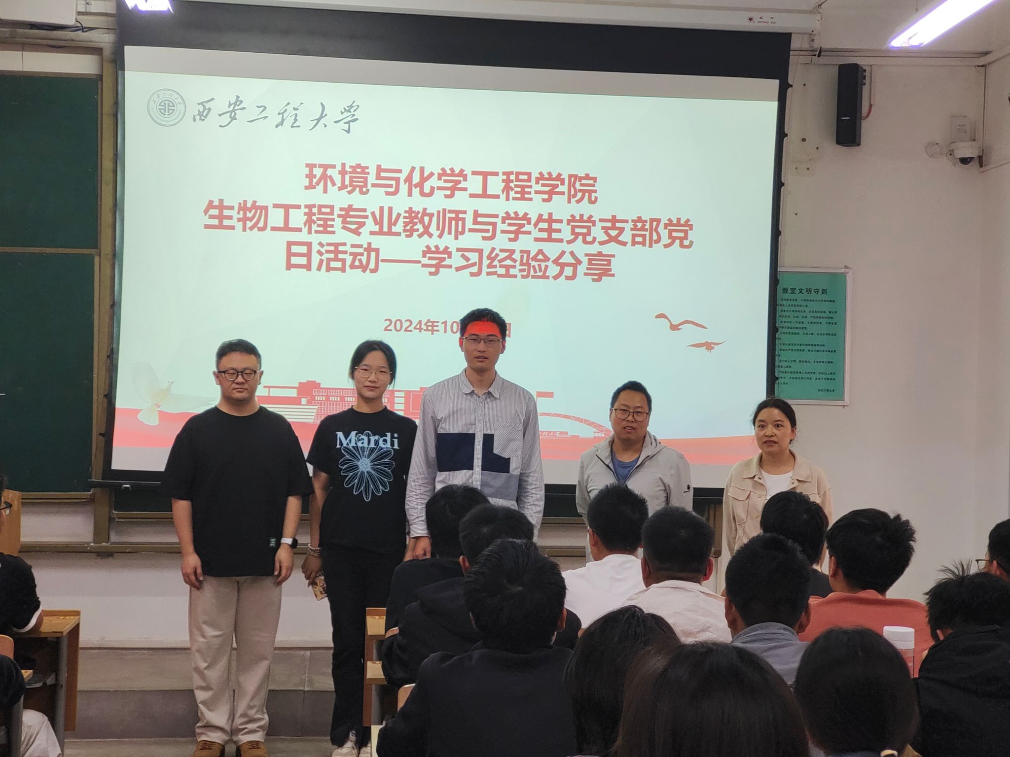WilliamHill中文官方网站2024年研究生考试取得历史成绩的突破,升学率突破百分之四十破,位列全校第一,特别是生物工程2020级班升学率接近百分之五十。为了更好的总结今年的工作,帮助大一新生更快地找到自己的努力方向,选择更有效的学习方式,提高公司的人才培养质量。10月16日,生物工程专业教师与员工党支部于A座206教室开展“学之有道”——优秀党员员工学习经验分享主题活动,活动内容主要是本专业的学长学姐分享自己平时学习的经验以及在推免中的经历。本次会议由生物系党支部书记潘虹和生物工程专业员工党支部书记刘啸尘主持,洪一楠老师,高乃越,梁芯瑞以及全体24级生物工程专业员工参与。