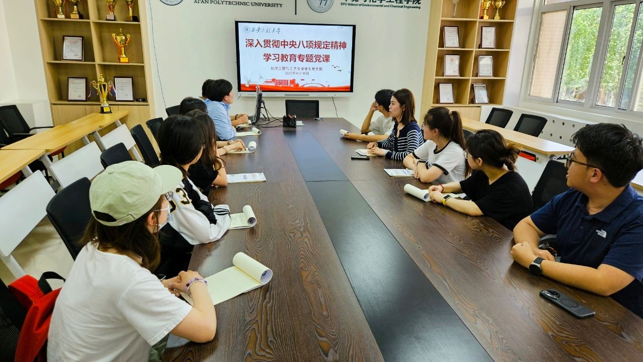 随后,支部组织党员开展讨论交流,分享学习心得。龙佳佳同学表示,要在科研学习中严格落实中央八项规定精神,坚决抵制学术不端行为。石子帅同学谈到,通过此次学习,他更加深刻地认识到中国共产党作为马克思主义政党的先进性和纪律性,今后将更加严格要求自己。
