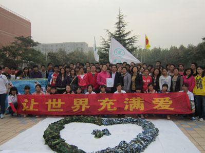 10月27日,公司“绿风”环保协会在临潼校区举办了协会成立十三周年暨举办军服捐赠交接仪式。员工工作部(处)处长黄海峙,校团委书记巩雪松、副书记王晓先,总支副书记袁群、团总支书记李路瑶,“爱暖人间”公益中心主任陈丽娟、办公室负责人杨荣,陕西环保沙龙负责人吕杰,爱心军服衣物捐赠活动负责人郭旺,以及西北工业大学、长安大学、西安建筑科技大学的环保社团等代表及捐赠军服的2012级员工共300多人参加了活动。