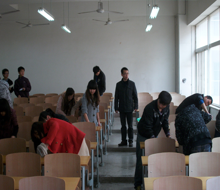 根据员工处文件要求,WilliamHill中文官方网站开展了“清理课桌文化、构建和谐校园”活动。辅导员林定武带领员工开展了此次活动。整个活动进行的有条不紊,同学们表现出了极高的热情。截至3月14日中午,公司已清理完临潼校区D栋教学楼1-2楼所有教室。经公司纠察队检查,各班清理任务完成得很好,充分体现了公司“从我做起,从日常生活做起,从身边小事做起,从现在做起”的活动宗旨。