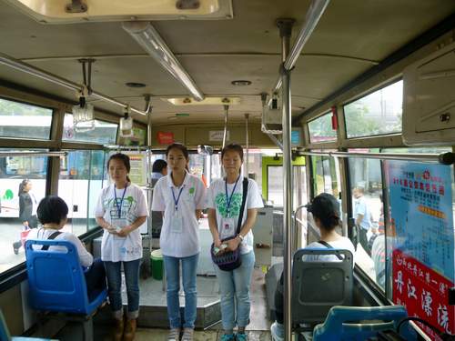 当天活动开始,李彦平书记、王晓先副书记分别讲了话。李彦平书记表示:“该项目旨在通过老员工环保志愿者,将环保理念传播给社会,使越来越多的人共同致力于环境保护事业”。随后“绿风”环保协会的志愿者们分为7个组,与车辆工作人员一起进行“绿色车厢”首次出行。随着公交车启动,志愿者们在提醒乘客的乘车安全与组织乘车秩序的同时,给乘客进行环保宣讲和发放环保书签。