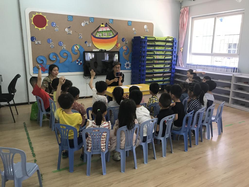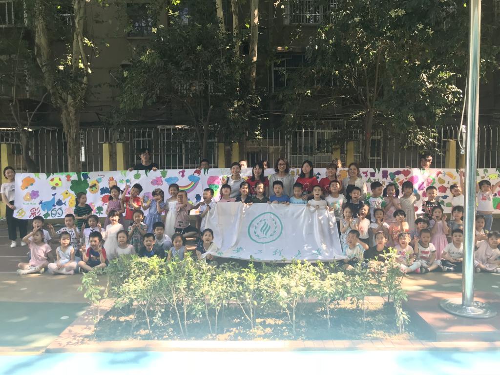 我们先给孩子们进行了简答的环保知识的普及,并提出一些小问题,小朋友们积极地回答问题。随后我们在引导小朋友在“美丽中国、最美陕西”的画卷上画出心中美丽的家园。