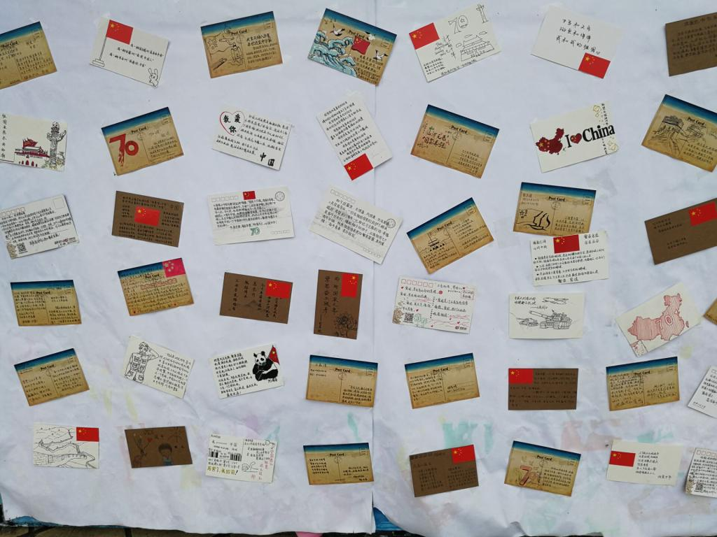 活动期间,同学们积极报名并踊跃参加,将对祖国的祝愿与期盼投注于一张张明信片中。明信片上画着一面面鲜艳的五星红旗,写着“国强则民强,国富则民富,国家昌盛则民族亦昌盛”;“我在祖国怀里成长,祖国在我心中扎根”;“我以我心爱祖国,我以我行报祖国”等动人的寄语。