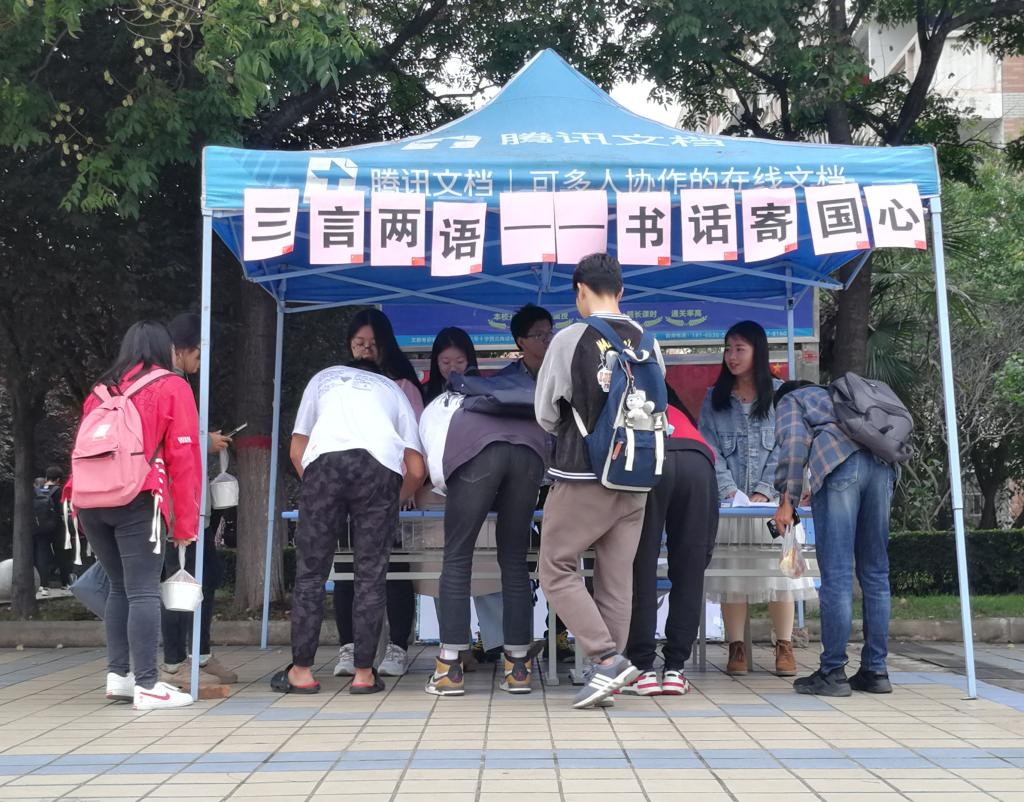 为传递公司员工的爱国之情,献礼祖国70华诞。10月8日至10日,WilliamHill中文官方网站弘毅励志社在临潼校区中心广场,举办了“三言两语——书画寄国心”的明信片征集活动。