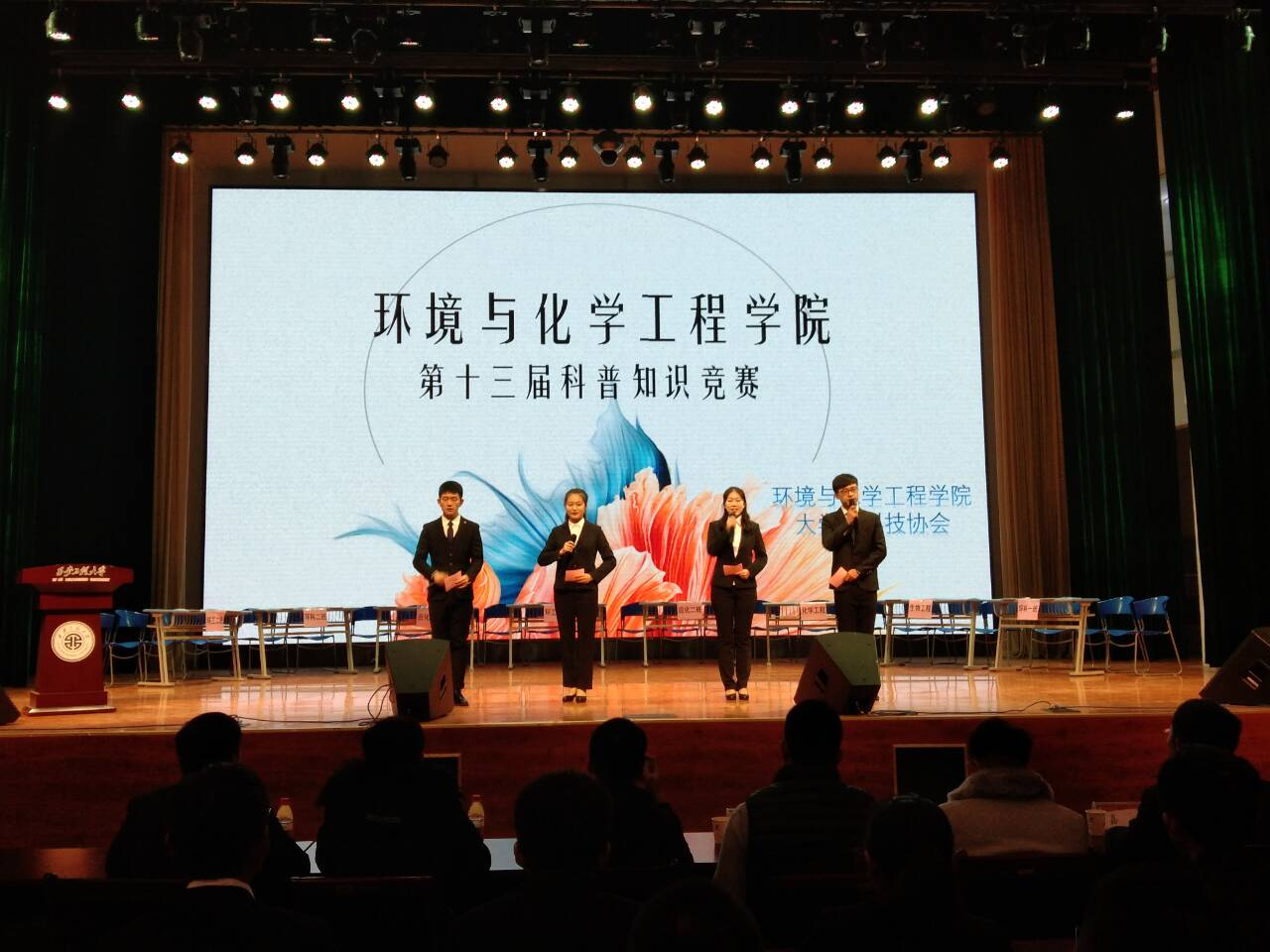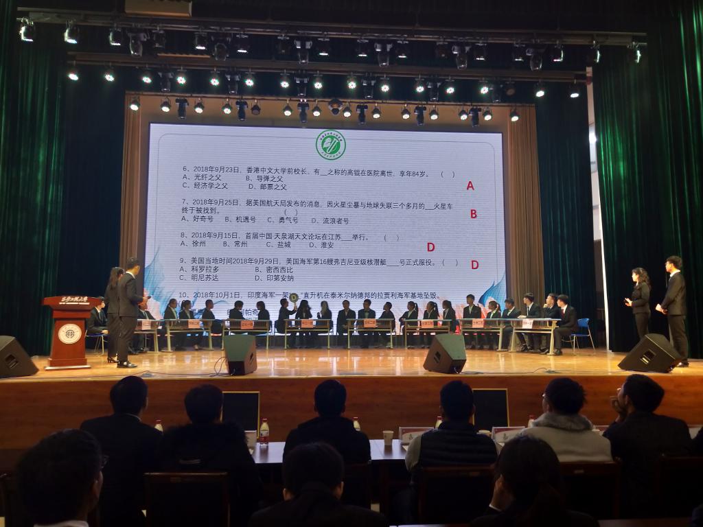 贾天昱在致辞中指出,同学们应该积极参加员工科技活动,丰富科技知识,培养团队协作能力,展现当代老员工良好的精神风貌,在比赛中,赛出水平,赛出风采。随后进行精彩的比赛环节,本次大赛分为志在必得、齐心协力、最强大脑和尘埃落地四个环节。第一环节主要考验队员们对基础科学知识的了解情况,台上选手们沉稳作答,观众们掌声不断。第二环节需要队员们争分夺秒的答完判断题后进行猜词题,队员相互配合“你画我猜”,极大地提高了比赛的趣味性。第三环节视频题,各队展现了丰富的知识储备,赛况异常激烈,现场气氛达到高潮。最终,比赛的比分在尘埃落地环节定格。环科1802班、化工1801班和环科1801班分别荣获本次大赛的第一、二、三等奖,其余5支队伍获得优秀奖。