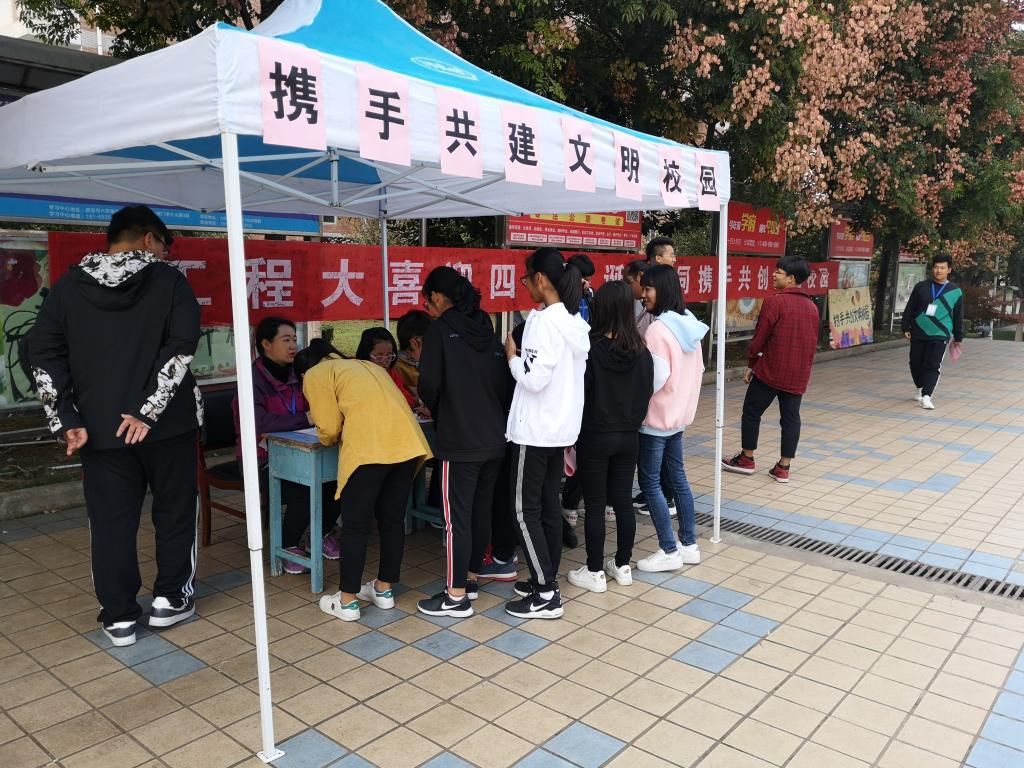 活动伊始,前来参加的同学已经络绎不绝,通过开展“工程大喜迎四十华诞,通携手共创文明校园”主题横幅签名、发放倡议书、张贴“创文明校园海报”等活动。呼吁大家积极参加校庆相关活动,从身边点滴做起,尊敬师长,爱护校园。