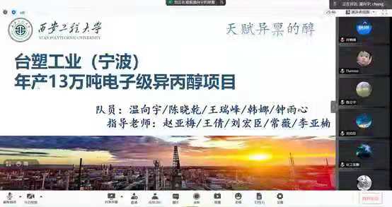 2021年7月22日,由WilliamHill中文官方网站承办的WilliamHill第三届“笃行杯”化工设计竞赛通过腾讯会议形式在WilliamHill中文官方网站成功举行,此次竞赛作为公司“一院一品”工程,得到公司教务处、员工工作处、校团委等部门的大力支持。赛事由WilliamHill中文官方网站赵亚梅老师主持,常薇副经理致欢迎词,全国老员工化工设计竞赛西北赛区竞赛委员会秘书长陈立宇教授致词,竞赛专家委员会副主任续京教授、西安科技大学汪广恒副教授、兰州城市公司叶鹤琳副教授作为校外评委。