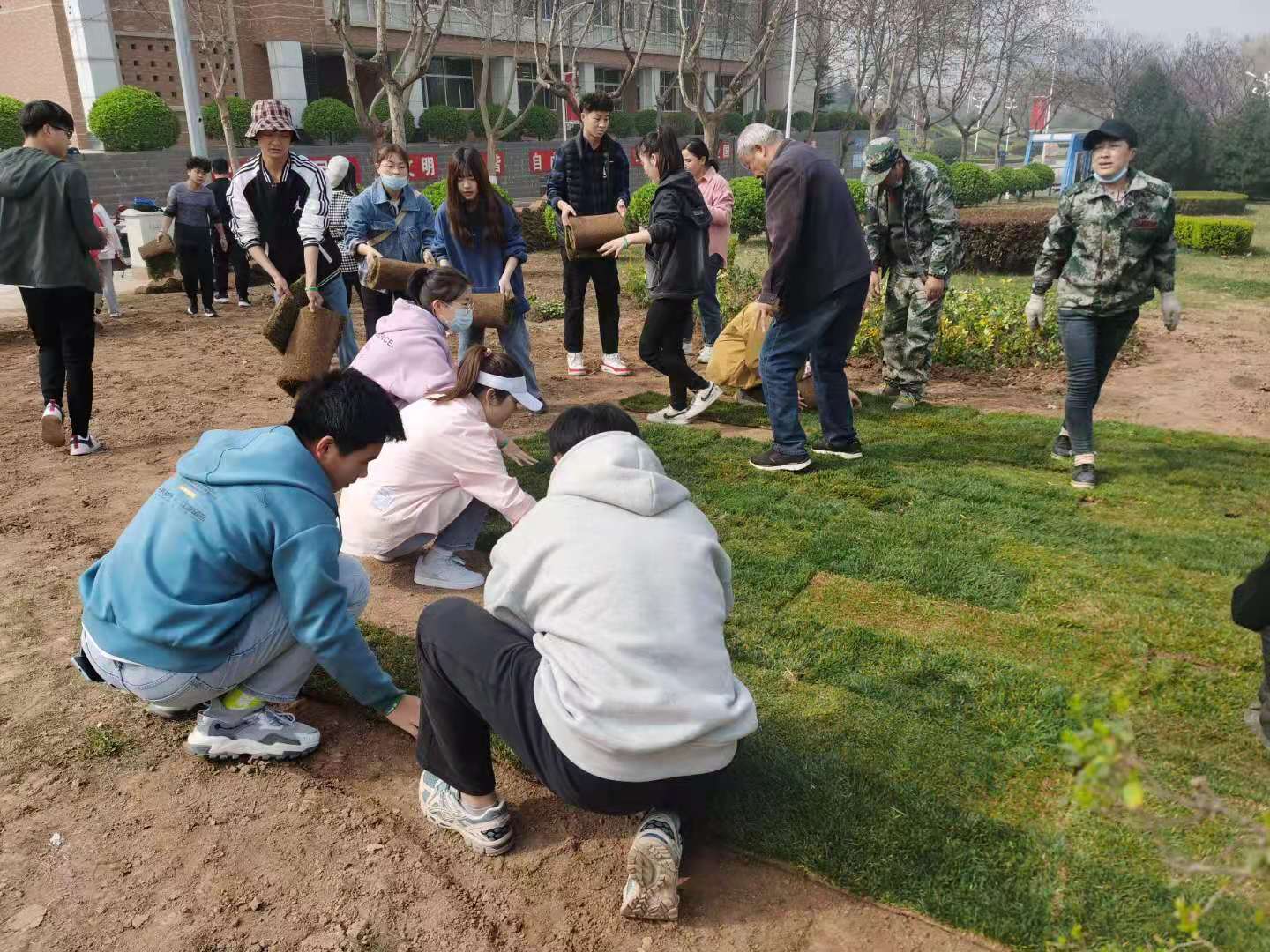 贾天昱首先为大家介绍了本次活动的具体流程、活动意义并强调同学们要听从指挥、注意安全;夏鲲首先感谢绿风环保协会长期以来对公司绿化工作的支持,并为同学们介绍了公司绿化工作的基本情况,绿化主管卫武锋老师为同学们演示植绿步骤及操作要领;最后所有人根据指导分区进行整理土地、草皮铺设等工作。活动持续近两个小时,大家收获颇丰,切实感受到劳动带来的美好体验。