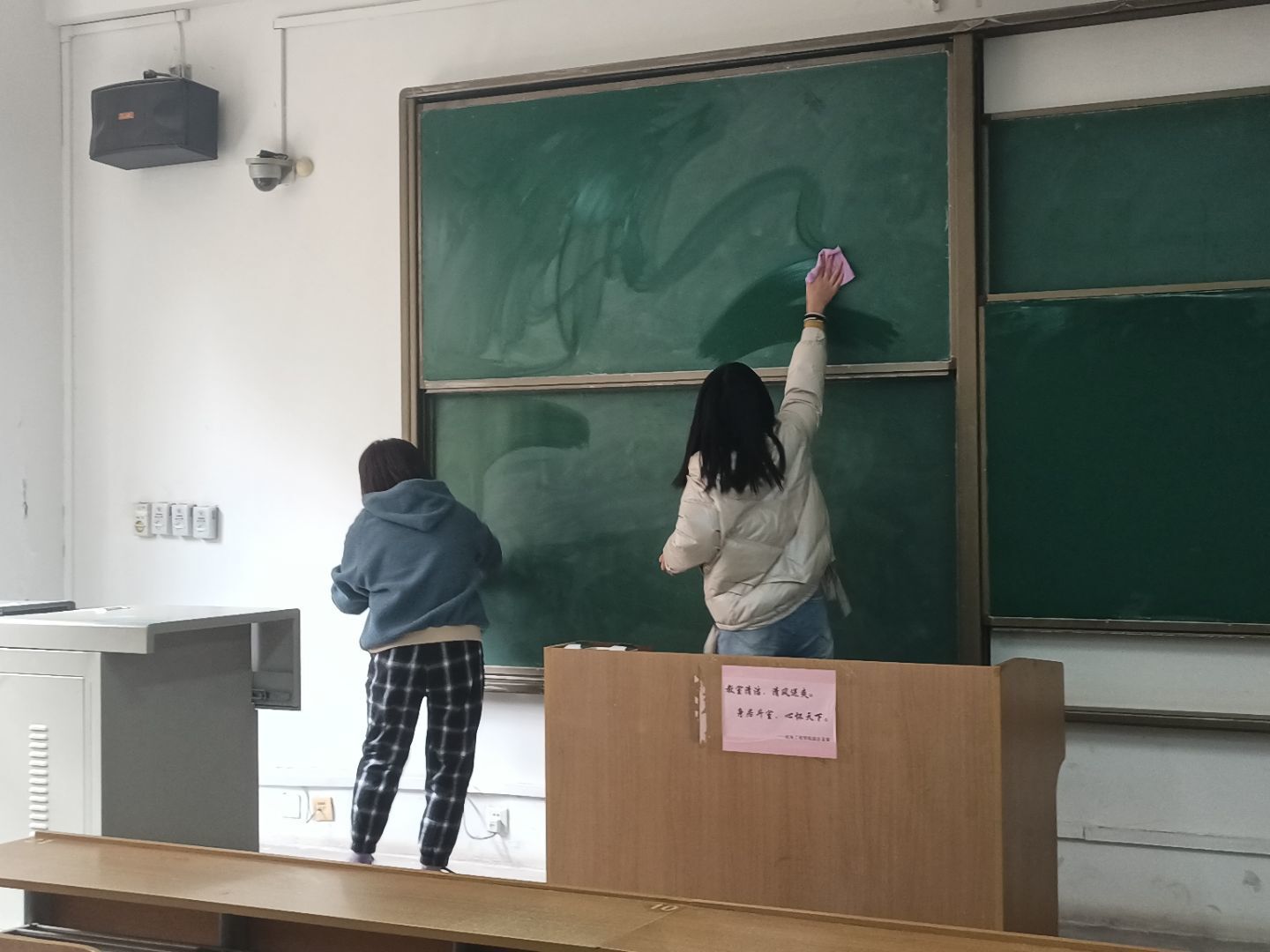 首先,全体成员在A教学楼集合,班级志愿者在各自组长处有序进行人员签到。之后由队长分组,并分配各个组的打扫区域和主要任务。各组组长负责拍照记录。一个组负责6个教室,主要任务包括:将地面的垃圾清理干净、将黑板、讲台以及桌子擦干净、处理桌肚内垃圾等。在这期间,青分队队长黄鑫、王一恒、常金如在各个教室提供帮助,并指导大家有序的进行打扫,消除卫生死角。任务完成后,全体成员在A教学楼下集合,由常金如对本次活动进行简单总结并合影留念。至此,义务打扫教室活动圆满结束。
