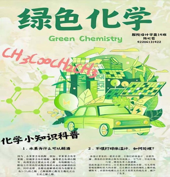 为普及化学知识,增添校园艺术文化氛围,公司化语社团于2023年5月24日举办“见心见行,编译化学”活动。此次活动的要求为从任意化学角度设计海报,例如绿色化学、能源化学等。海报要求有一定创新性和对化学知识的科普性。