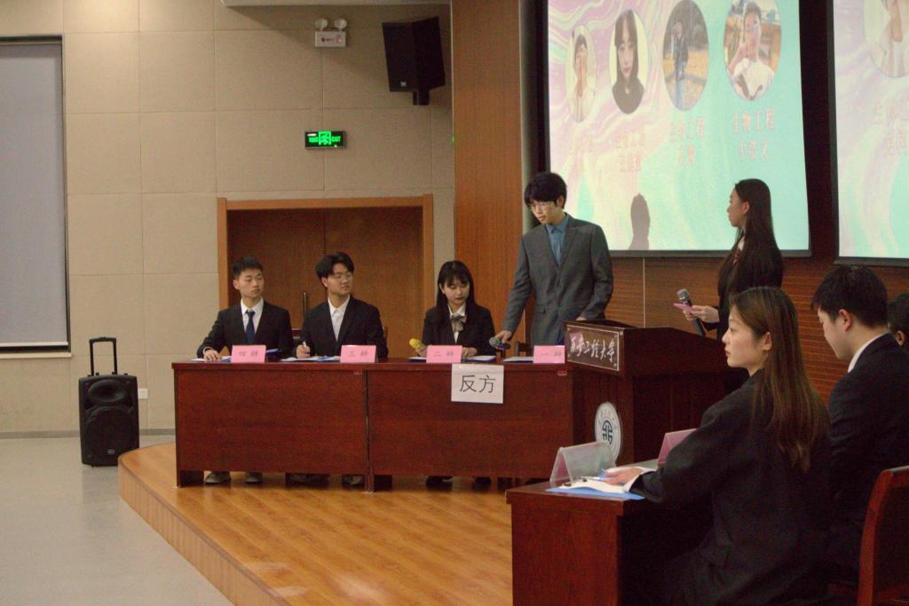 本次大赛共分为6组,每组辩手们需针对“干一行爱一行还是爱一行干一行”“结果正义重要还是程序正义更重要”“当你背了一个黑锅,且很难解释清楚,你是选择力证清白,还是不做解释”辩题展开辩论。大赛开始,双方运用理论引出自己的观点,并结合典型事例进行分析概括,就辩题展开深层次的辩论。辩论过程中,选手们雄辩滔滔,妙语连珠,台下同学凝神聆听,掌声不断,赛场上精彩万分。大赛尾声,主持人宣布各队得分结果,优秀团队为应用化学专业代表队,优秀辩手有冉文悦、马艳、邓颖晴、刘娜娜。大赛结束全体嘉宾合影留念。