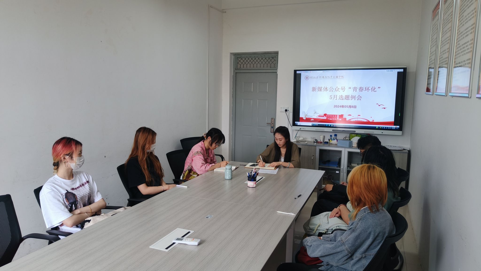 随后,各成员汇报了各自负责的五月份推送选题,内容丰富多彩,涵盖了员工动态、校园生活、就业指导等多个方面,力争为广大师生提供全面、实用的信息。