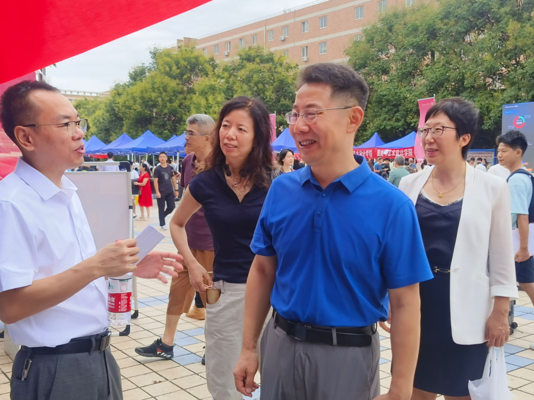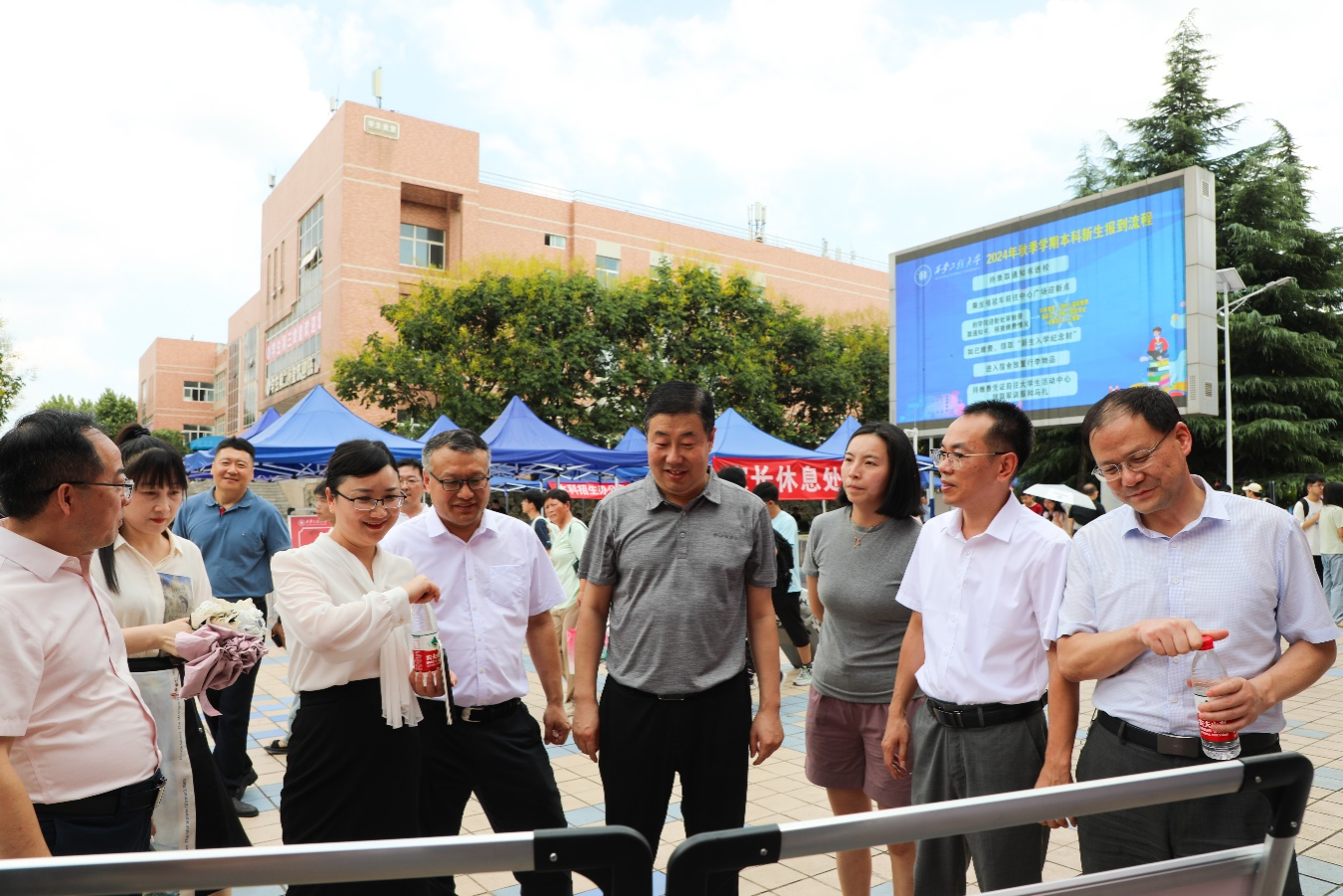 迎新两天,校领导多次来到迎新点指导慰问迎新工作,现场与家长和新生亲切交流,公司领导深入员工宿舍,了解新生动态和开学准备情况。公司老师和志愿者们一抹抹身影奔走忙碌,用他们的热情与汗水,为新生们提供无微不至的帮助,换来新生和家长的放心和暖心。