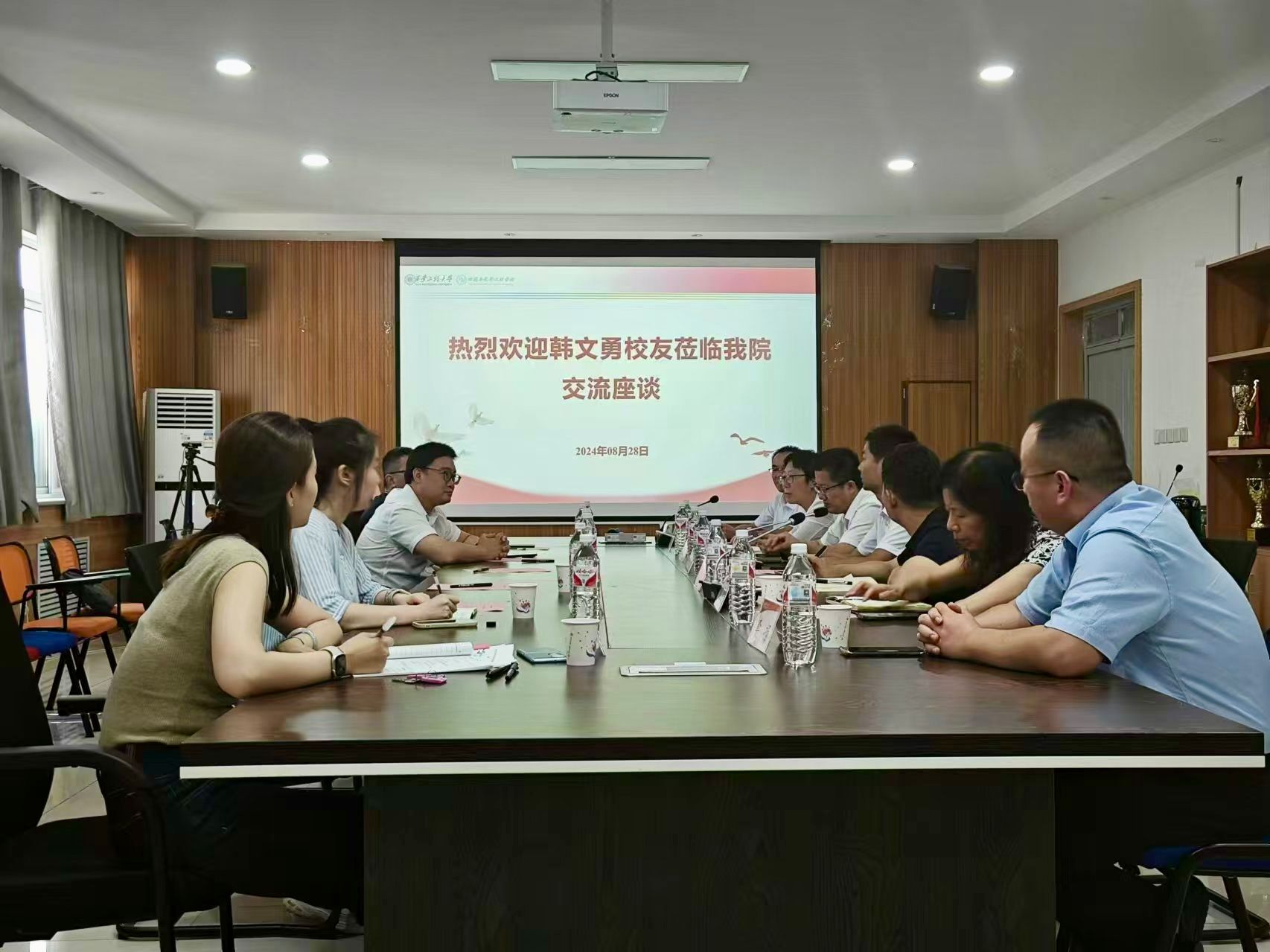 8月28日,全国五一劳动奖章获得者、公司应用化学专业2003级员工、遵义医科大学教授韩文勇应邀回到母校,并同WilliamHill中文官方网站师生进行了座谈交流。座谈前,董事长王海燕、副董事长朱永民一行在临潼校区贵宾室会见了韩文勇员工。