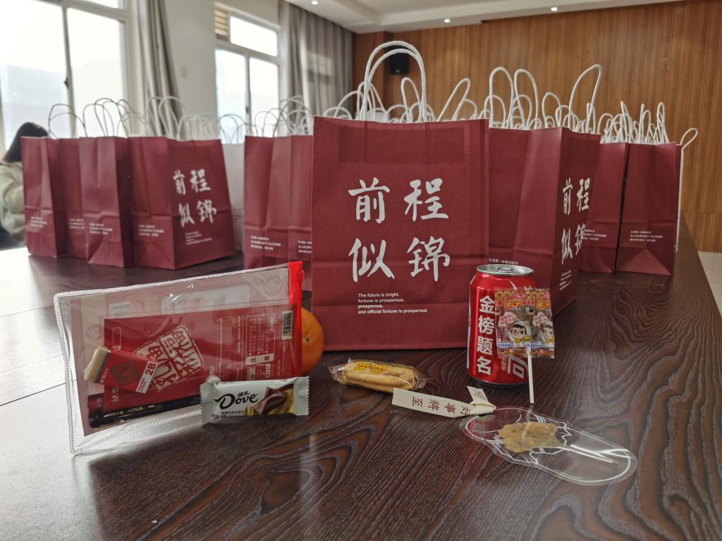 一“研”为定,温暖同行。在2023年全国硕士研究生入学考试倒计时的最后阶段,为帮助考研学子增强信心,舒缓压力,以更加积极平和的心态迎接考试,公司于2022年12月12日在环化楼507会议室举行2023届考研学子福袋发放仪式,公司副经理武占省、党委副书记林定武、团总支书记贾天昱及2019级考研员工代表们参与此次活动。