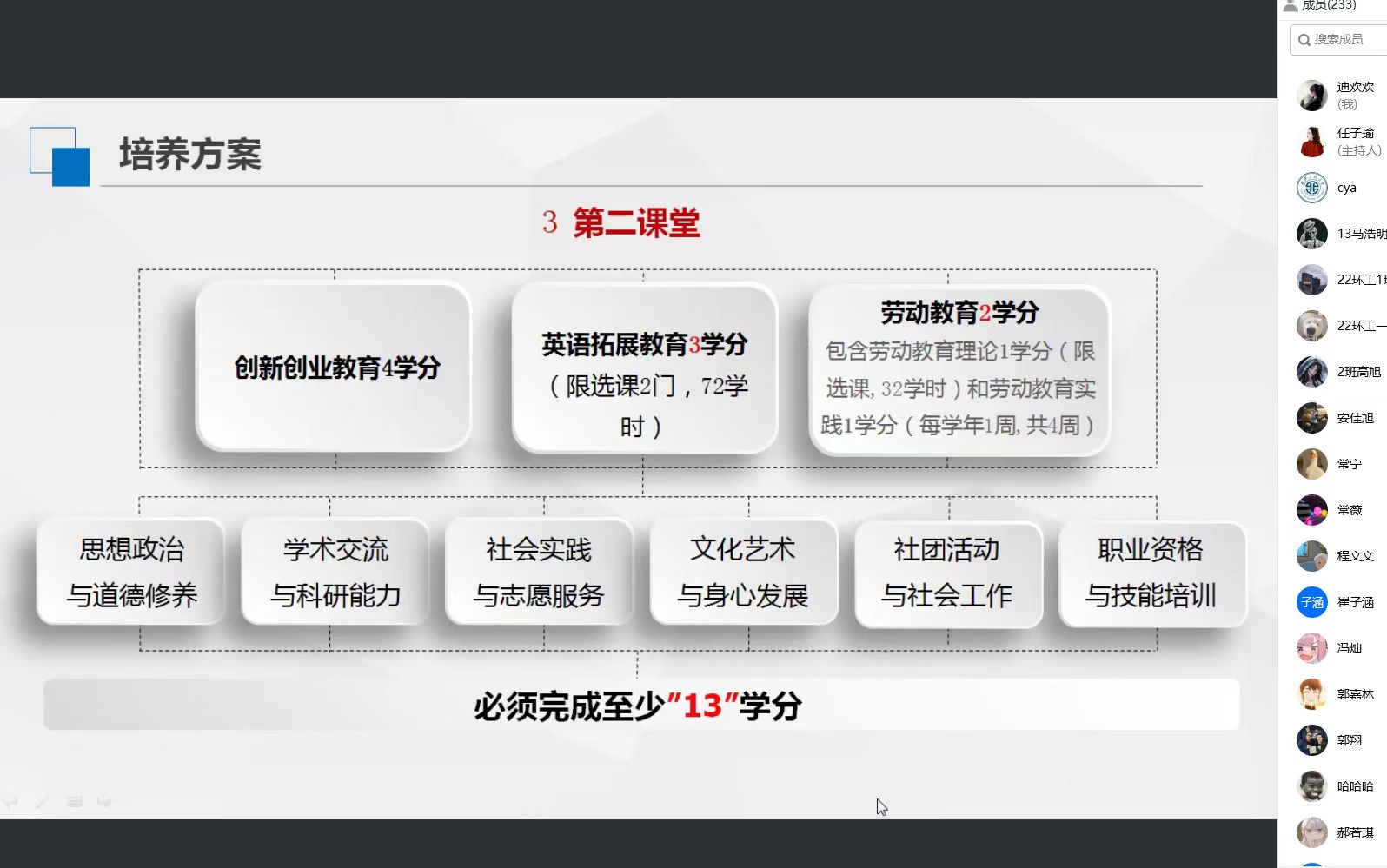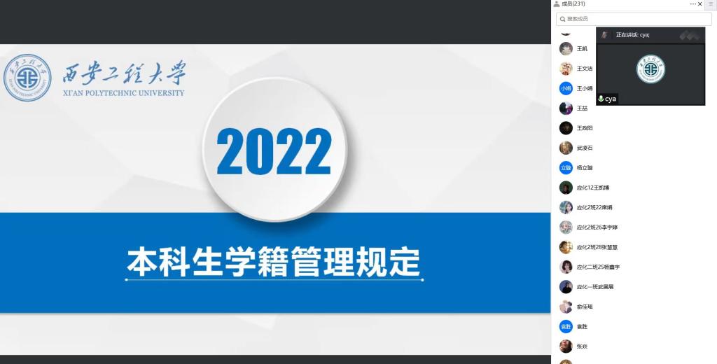 为帮助2022级新生尽快了解学籍管理规定,更好地规划大学学习生活,公司于9月11日上午以线上腾讯会议形式,召开2022级新生学籍管理规定宣讲会。本次宣讲会由副经理常薇主持,教务科党琳宁主讲,全体2022级本科新生参加了会议。