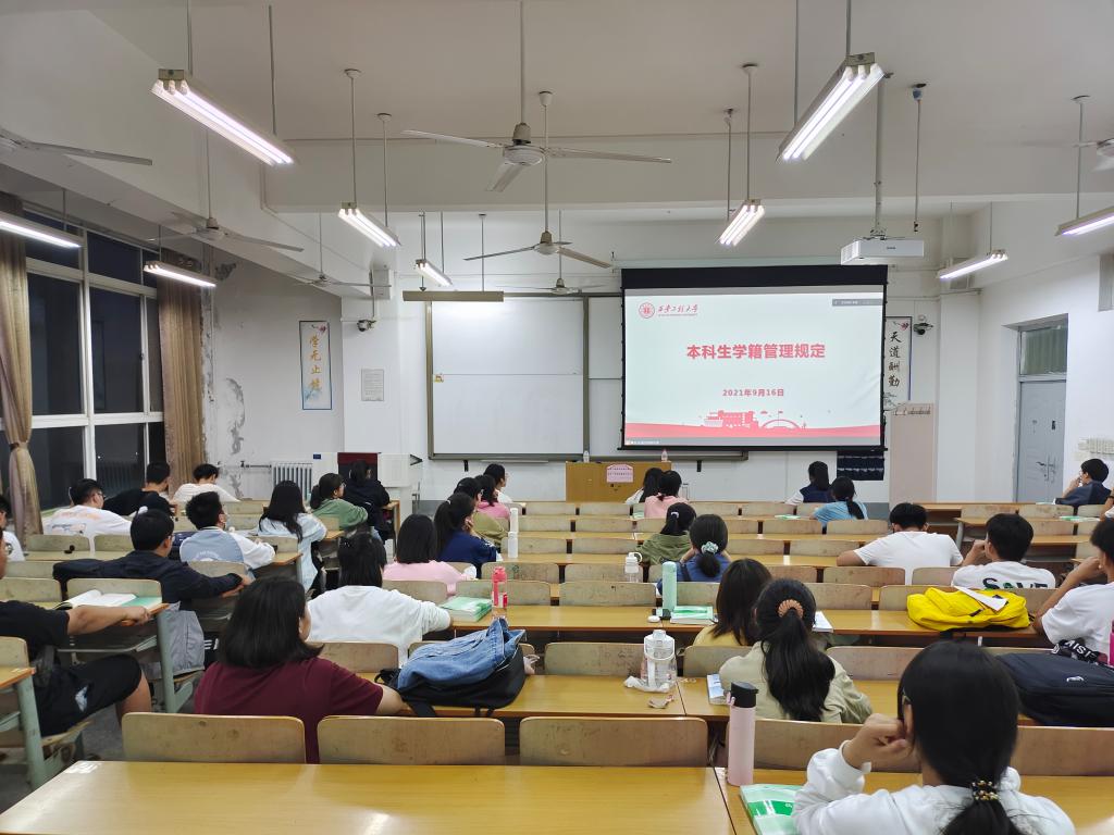 会上,耿倩详细介绍了公司的学籍管理规定,着重强调注册及学籍自查、转专业、创新学分、考核与成绩、学籍处理、考试管理规定、毕业证书和学士学位证书获取条件和研究生推免条件等事宜。并提醒同学们在大学期间不能懈怠,要认真学好每一门课,强调坚决不能触碰考试作弊这条高压线,鼓励同学们刻苦钻研、勇于探索、不忘初心、锐意进取。