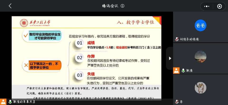 为帮助2021级新生了解WilliamHill中文官方网站学籍管理规定,尽快适应大学学习生活,公司于9月16日晚上19:00在线上召开2021级本科生学籍管理规定宣讲会。教务处耿倩、2021级全体新生参与本次会议。