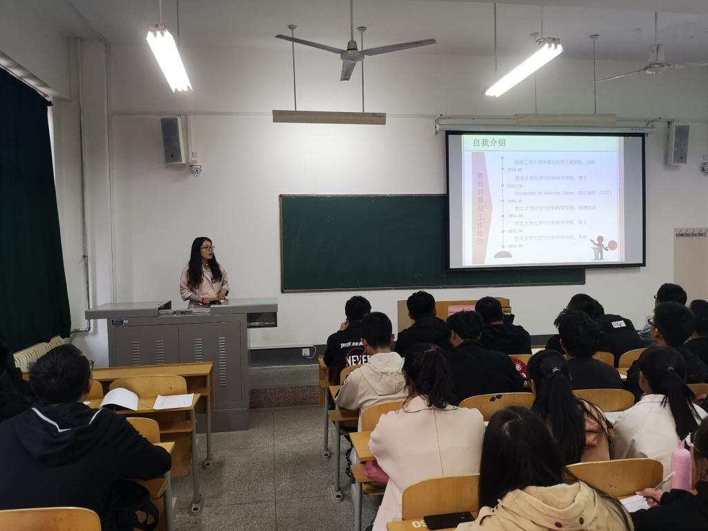 介绍会开始,屈晓妮老师首先组织参会员工填写调查问卷,随后和同学们分享了个人经历并对应用化学专业的发展方向做出了详细的解读,包括:专业解读、学习方法、相似专业、就业发展、竞争专业、竞争因素。同时强调了尽早进入实验室操作的重要性,她表示越早进入实验室进行实验越有利于我们今后的学习发展。