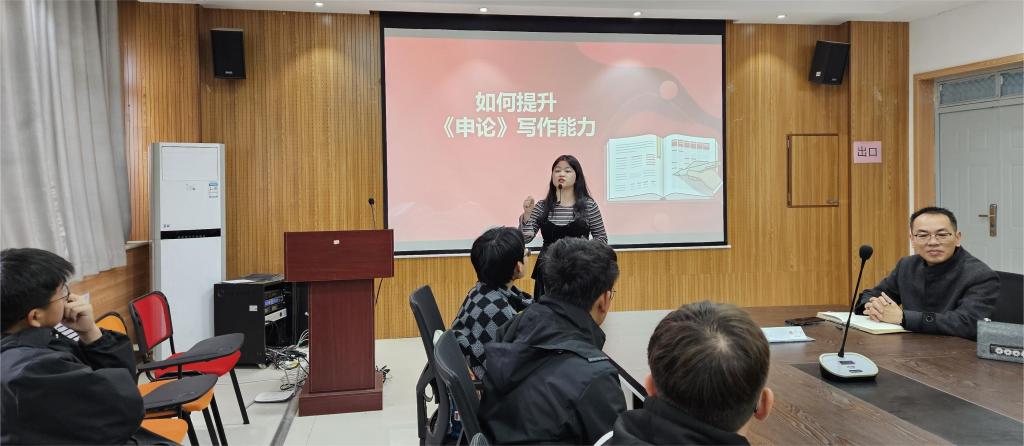 随后她以《如何提升《申论》写作能力》为主题,并结合自己的经历展开阐述,分别从审题、寻找核心词、确立分论点、支撑论点素材、文章结构等方面讲解了如何写好大作文,从“审题”、“找点”、“加工”三个方面介绍了如何做好归纳概括题型的解答,她强调,同学们要及早谋划,强化训练,不断提升应考能力。分享会期间,同学们围绕近期复习的困惑与员工进行充分的交流,受益良多。