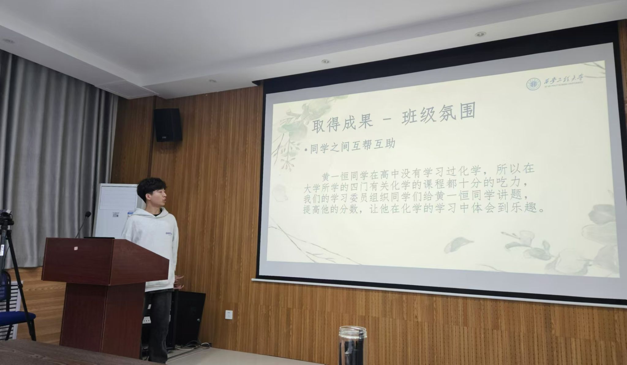 今年共有28个班级申报“优良学风示范班”,经年级推荐,公司审核,从中择优推选了15个班级申报“优良学风示范班”。 各班通过精美PPT展示和讲解,结合本班特点,逐一展示了各自班级学风建设举措和成果,展示了各班同学团结友爱,积极向上精神风貌,现场氛围热烈。