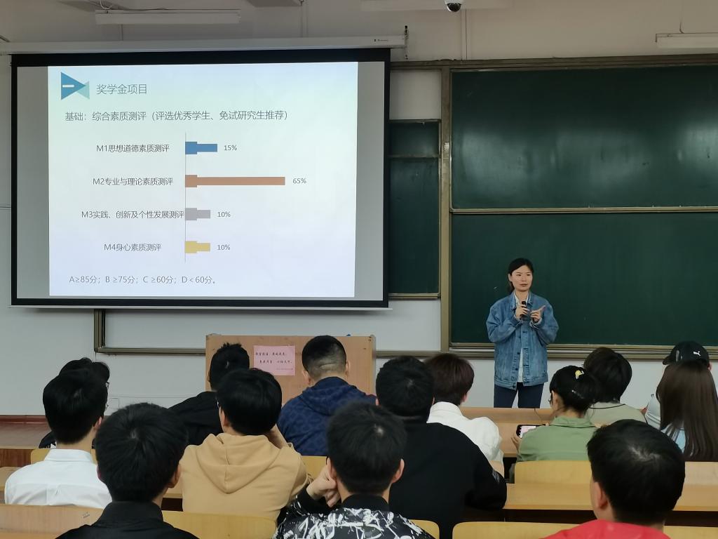 会议初始,刘婧对公司员工资助工作做出介绍。随后,她详细讲解了综合素质测评的具体评定内容及评定标准,同时介绍了各奖助学金的评定细则、要求以及国家生源地信用助学贷款的相关注意事项。紧接着,张明佳为同学们具体介绍各奖助学金申请表的书写及所需要提供的材料。会议最后,部分同学就本次会议的部分内容提出疑问,刘婧及张明佳对同学们的问题做出针对性解释。
