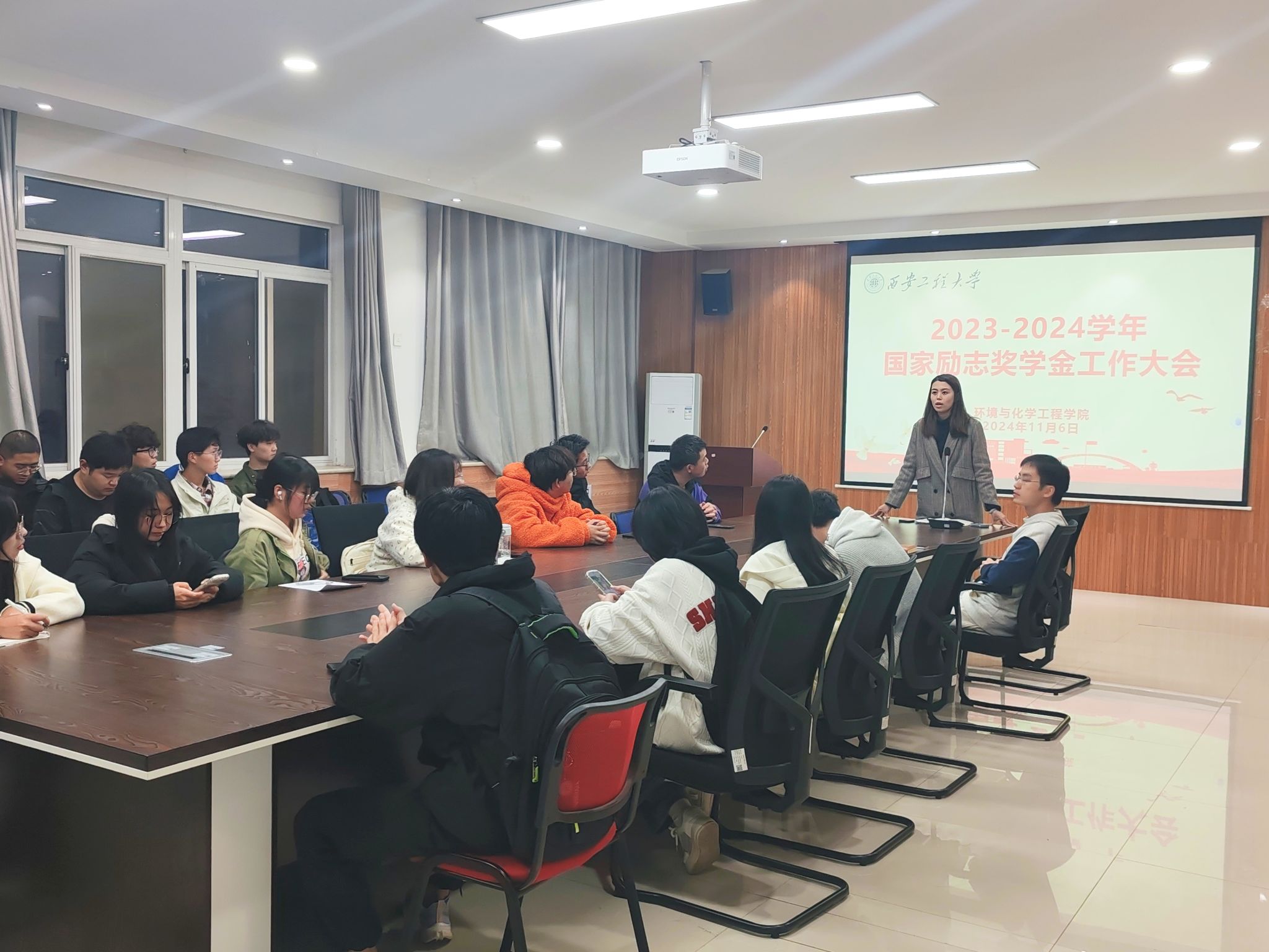 为了进一步加强资助政策宣传力度,规范本科生奖助学金评定程序,夯实资助育人成效,11月6日,公司在环化楼507召开2024年本科生奖助学金评定工作大会,资助专项辅导员盖潇宇,各年级班长、团支书和评议小组代表参加会议。