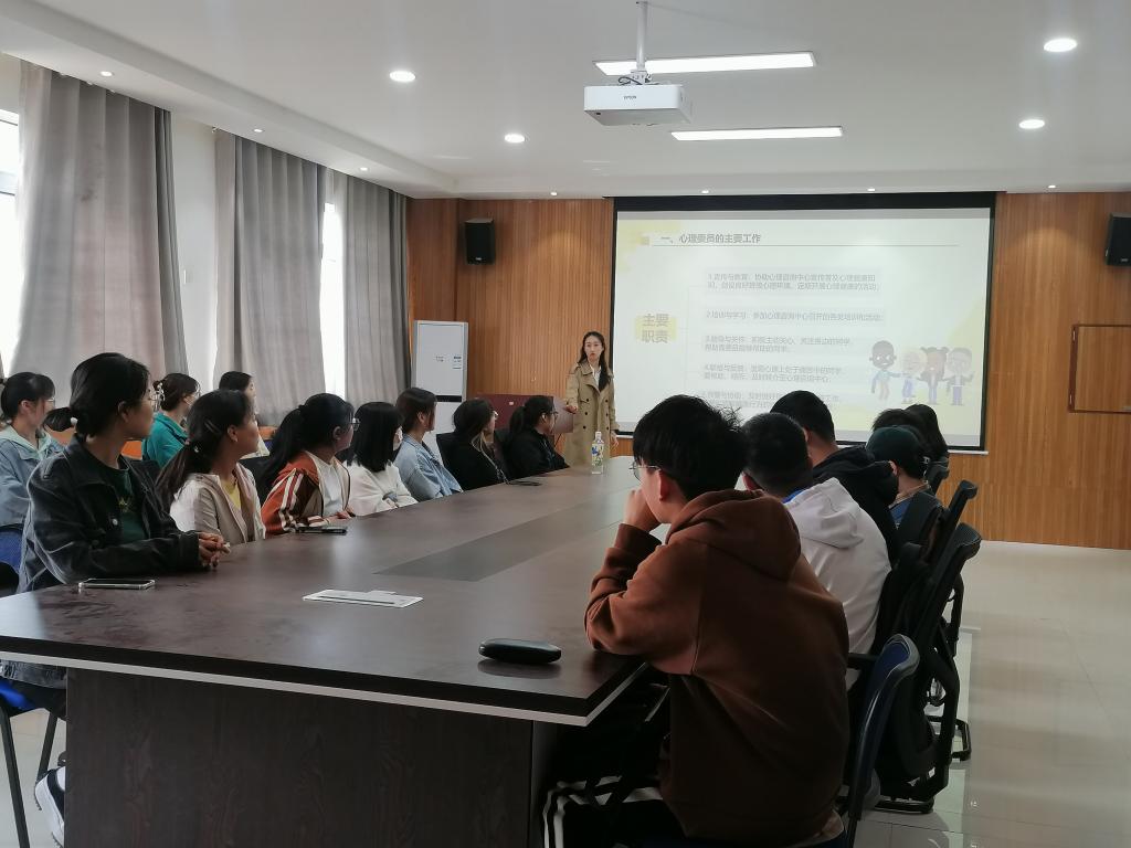 为增进班级心理委员对其工作的理解,更好发挥在心理危机预警与干预方面的作用,公司于4月12日中午在公司507会议室召开班级心理委员培训大会。心理辅导员任子瑜和全体心理委员参加本次大会。