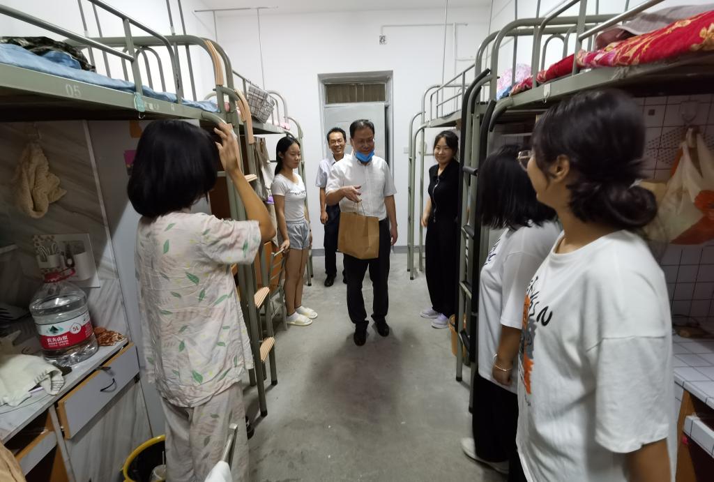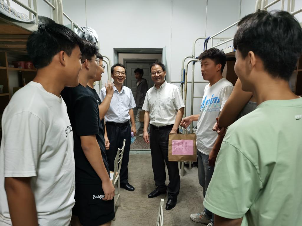 在中秋节到来之际,9月9日,公司经理张洛红、党委副书记林定武、辅导员贾天昱来到新生公寓,为2022级新生送上中秋节日祝福。